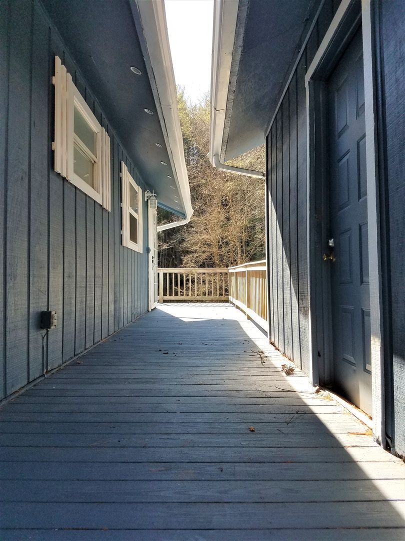 This gorgeous home is in the perfect location right on Windy Hill off of 221, your commute to Ashe, Watauga, or Wilkes will be a breeze! Outside you'll find a large 2 car garage, and a wrap-around deck to enjoy the sounds of the nearby creek. Walk inside the front door to the open concept living and kitchen space. The kitchen has adorable country cabinets and a beautiful neutral backsplash. Off the living area, you'll find the shared bathroom. The bathroom has a linen closet and laundry area. Washer & dryer hookups only. Each bedroom is spacious with bright windows and roomy closets.